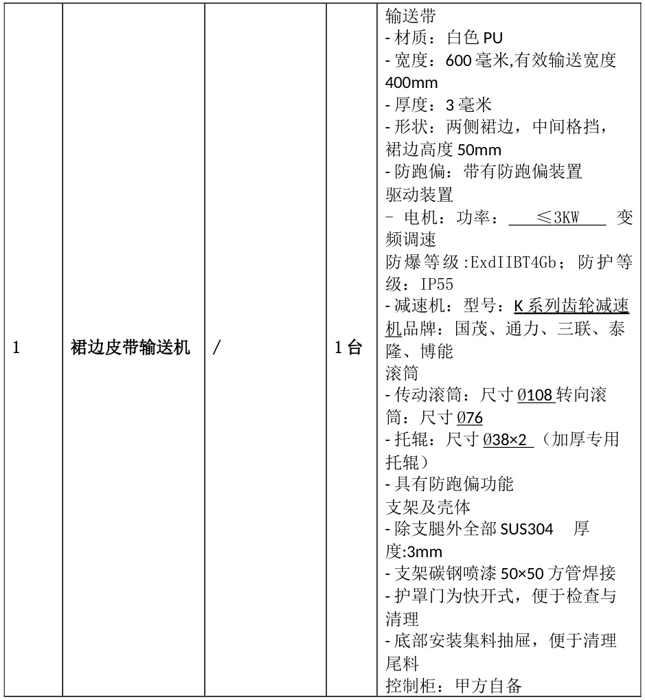 • 化工領域:防爆電機(ExdIIBT4Gb)+耐酸堿裙邊輸送帶,安全輸送化肥、樹脂顆粒。